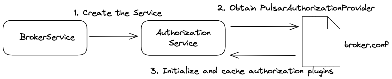- When the broker starts, it runs the BrokerService, which creates the AuthorizationService.