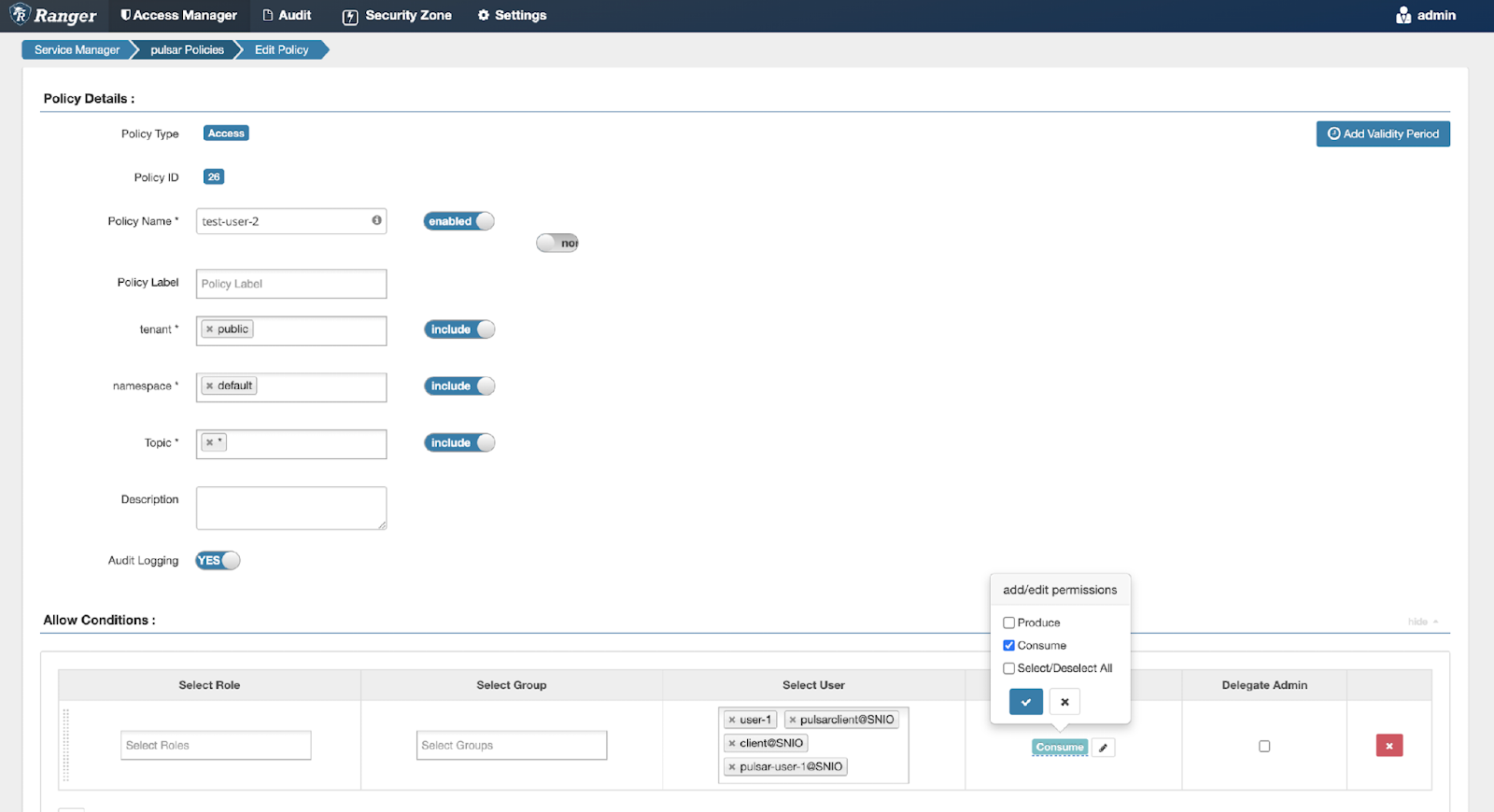 Figure 10. Visualized permission management in Ranger