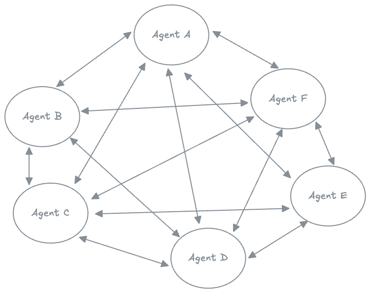 Riya knew something had to change. The team briefly considered consolidating into a single uber-agent, but that wasn’t practical – each agent existed for a reason, with different expertise and tools. They also tried quick fixes, like having one agent call another agent’s API. This helped a bit (for example, the support agent would ping the analytics agent for recent stats), but it was a brittle solution. Hard-coding one-to-one interactions between agents felt like playing whack-a-mole; every time they added a new connection, two more needs for integration popped up. With three or four agents, writing custom API calls between each pair was just about manageable. But as the number of agents grew, the point-to-point wiring became a tangle (as the illustration above shows). They needed a more elegant, scalable way for all these agents to stay in sync.