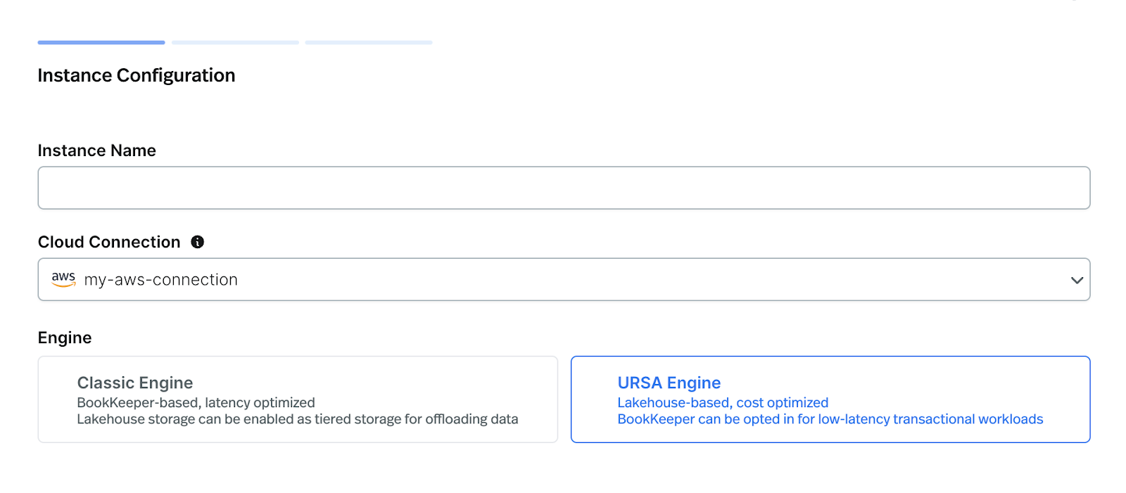 - Select Ursa as the engine when creating the Instance.