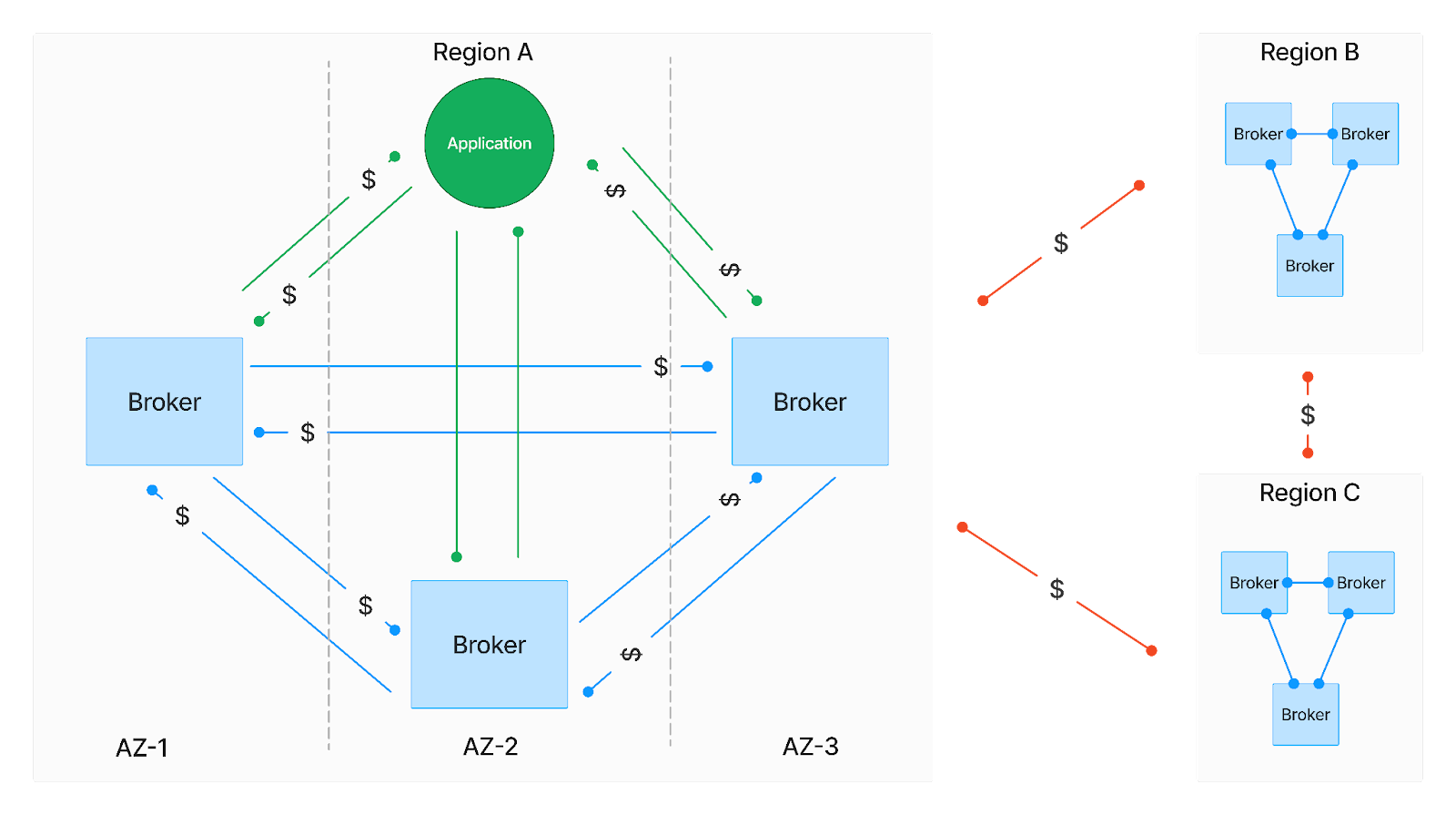 - Internal Replication Traffic: Data streaming platforms replicate data across multiple instances to ensure high availability. This replication, especially across different availability zones, can significantly increase costs based on the volume of data involved.