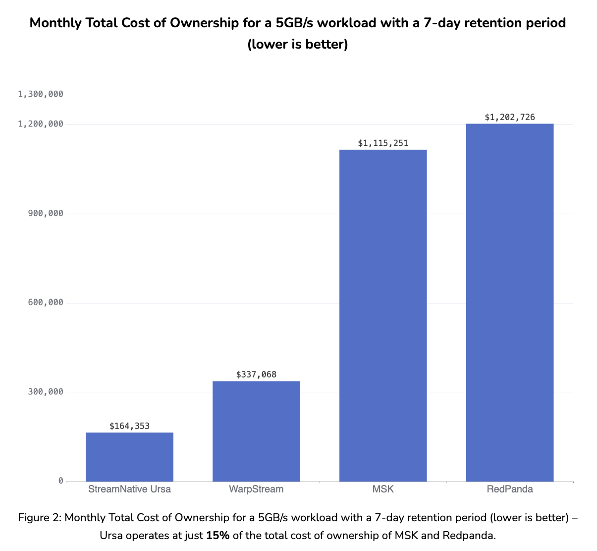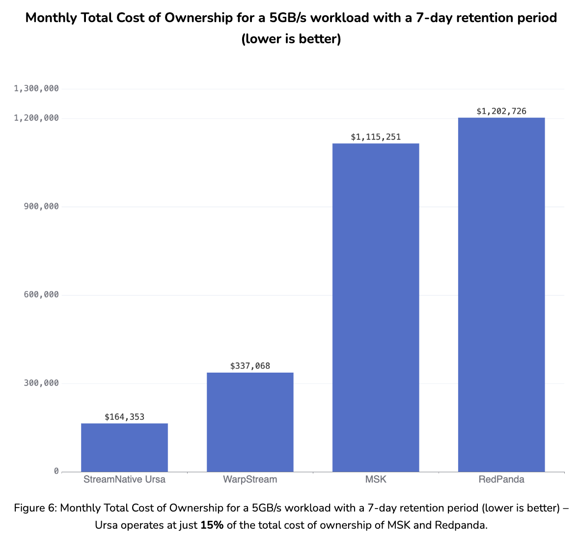- 86% cheaper than Redpanda ($1,202,853/month)