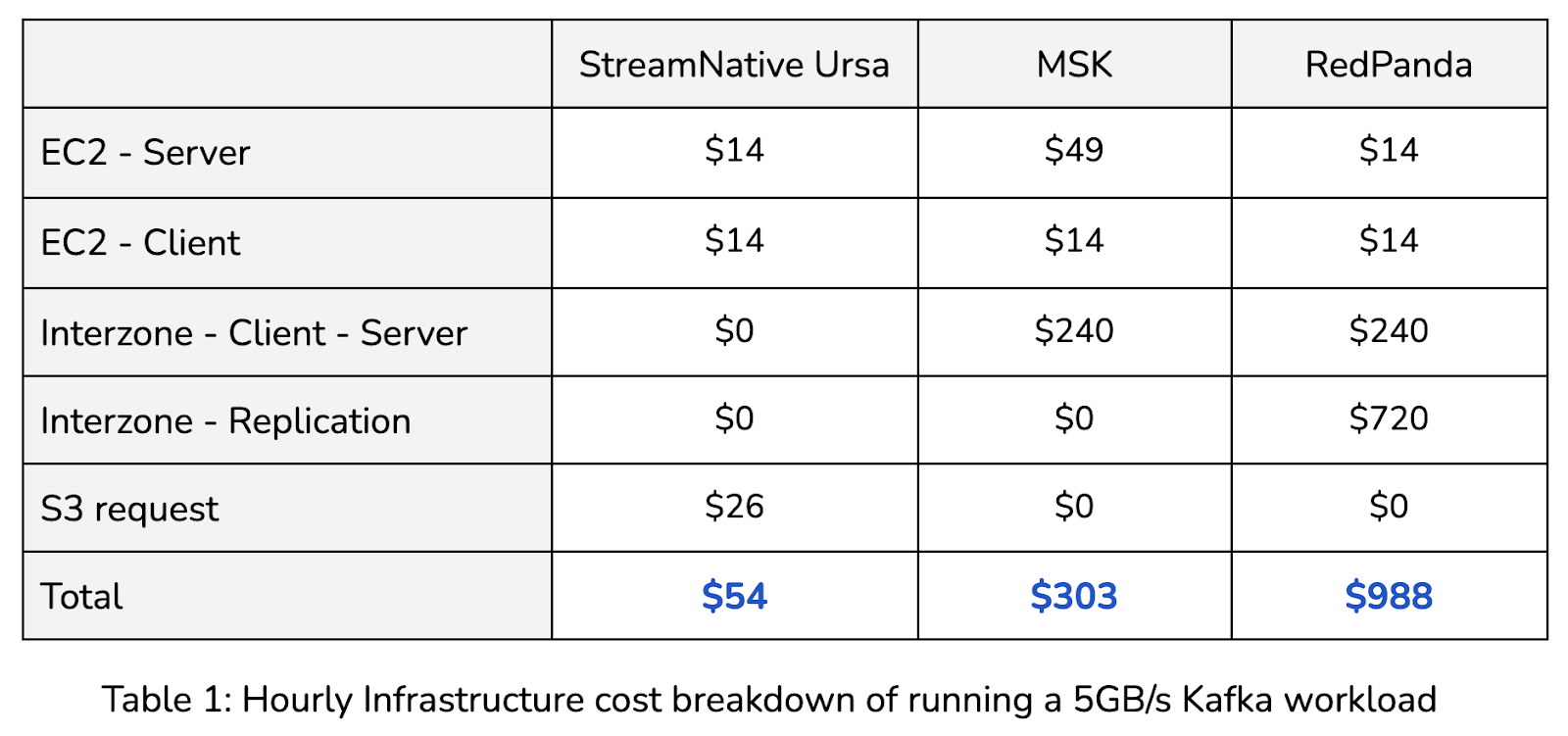 - Ursa: No inter-broker replication costs due to its leaderless architecture, eliminating inter-zone replication costs entirely.