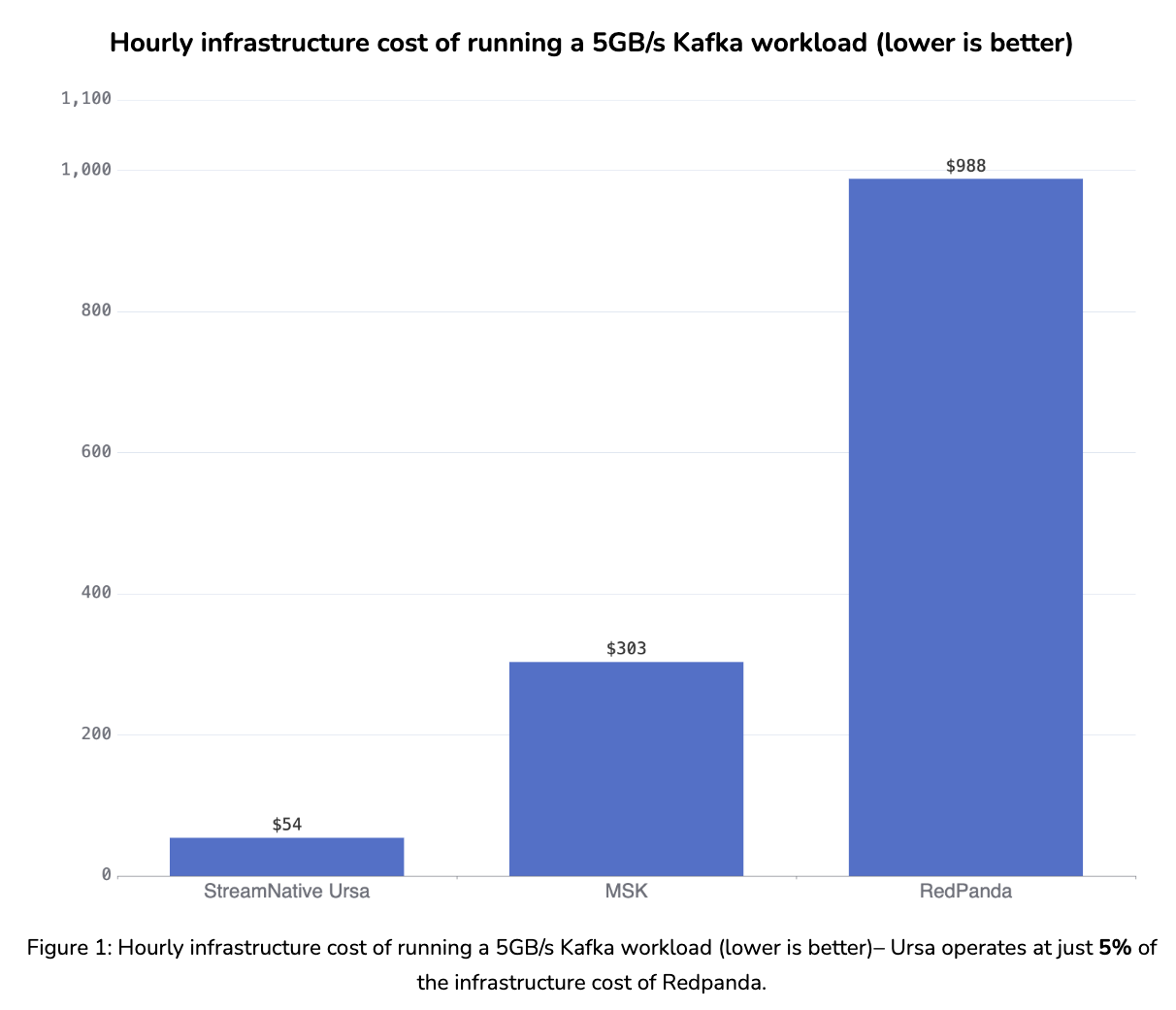 - Redpanda: $988 per hour → 18x more expensive compared to Ursa