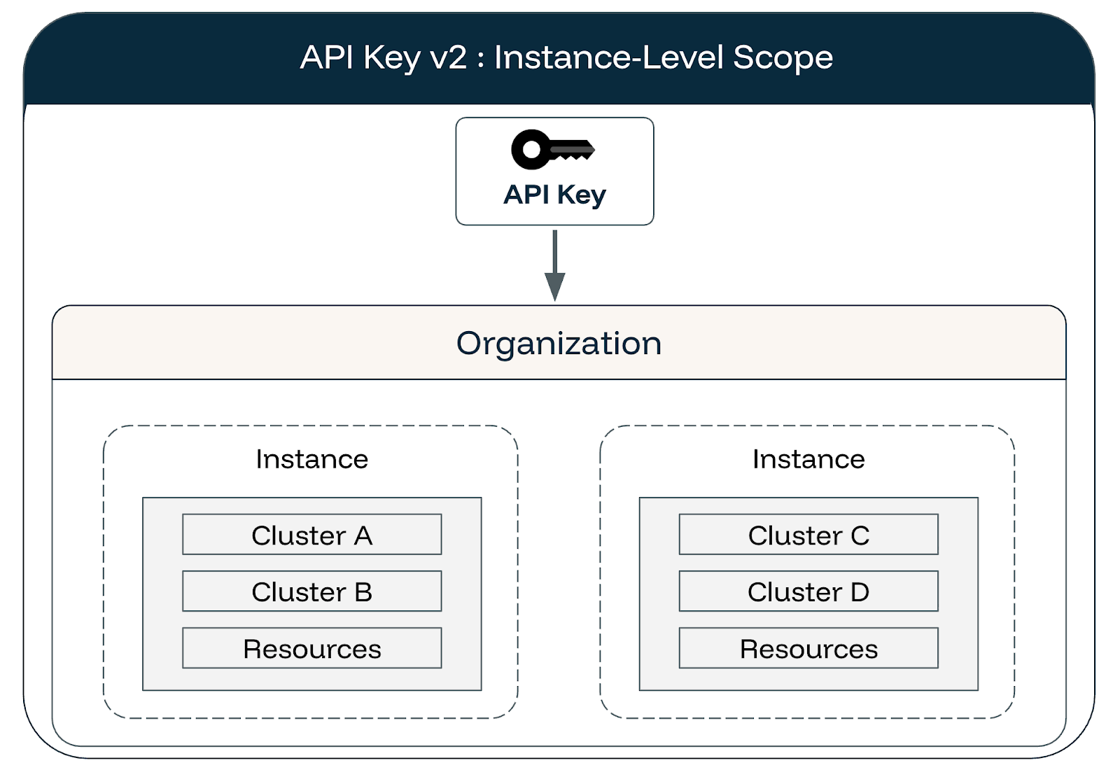 With API Key v2, API keys are no longer tied to a specific instance. Instead, they operate at the organization level, significantly simplifying authentication management.