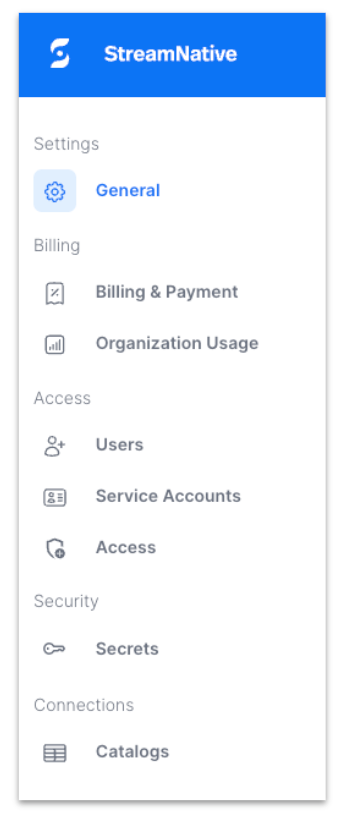 To address this, we’re introducing a new Organization Settings experience in the StreamNative Cloud console. This update brings a clearer ownership model, cleaner navigation, and a scalable foundation for future organization-level capabilities.