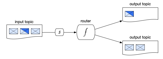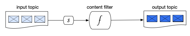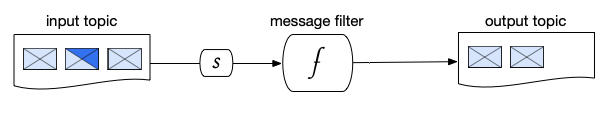 In a message filtering pattern, messages are received from an input topic, and then evaluated by a function. Only messages that meet certain criteria are passed on to the output topic.