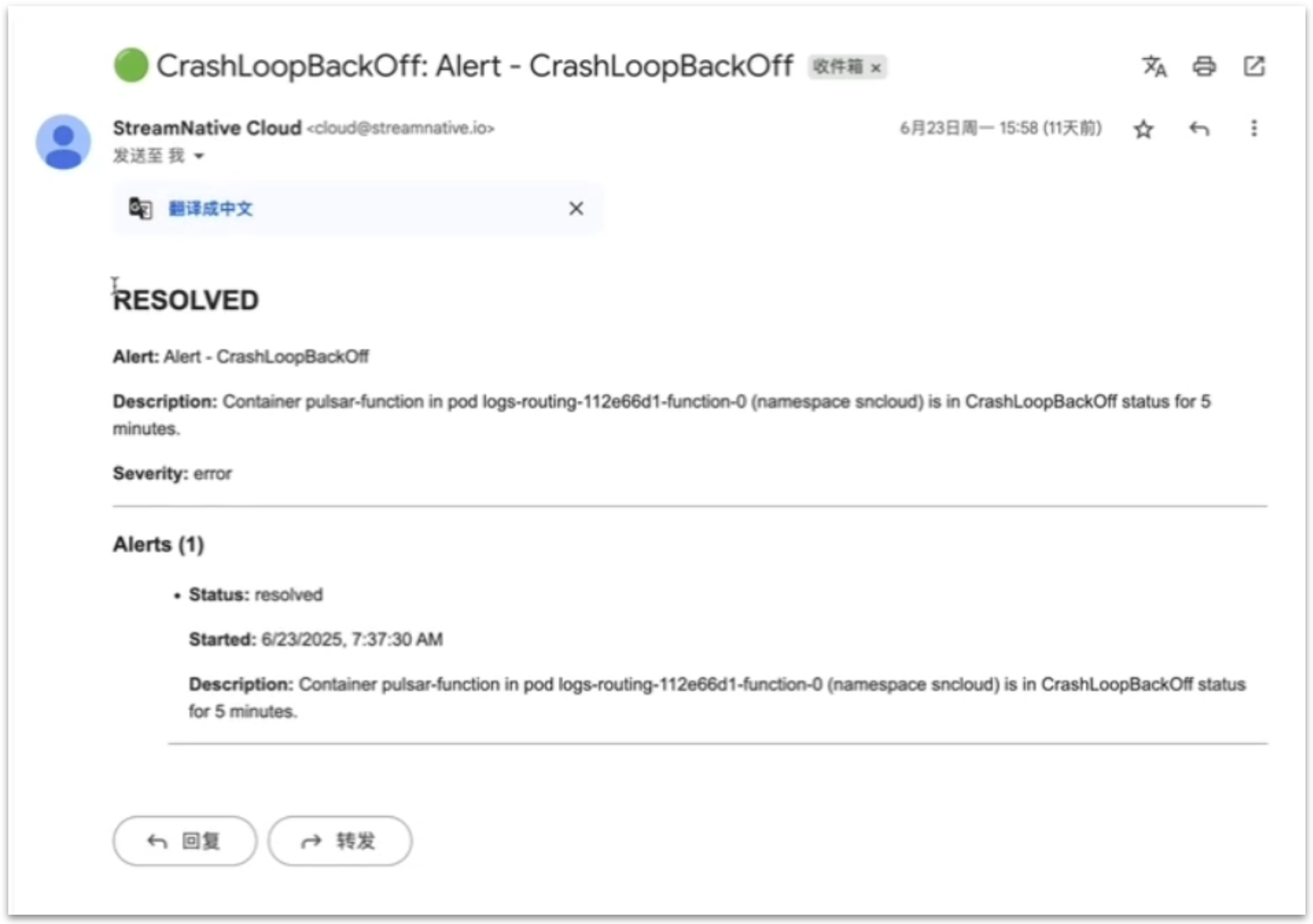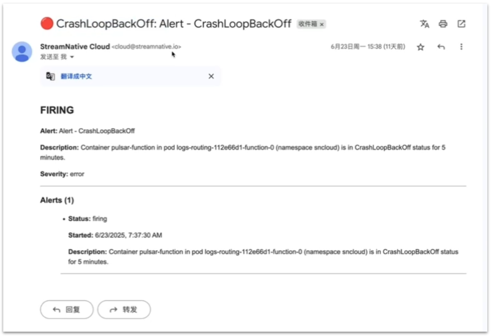 When a rule is triggered, StreamNative Cloud will automatically send an email notification so you can take prompt action.
