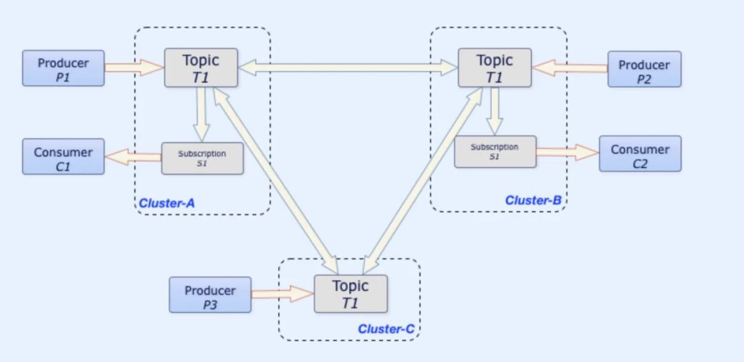 Figure 2. How geo-replication works in Pulsar