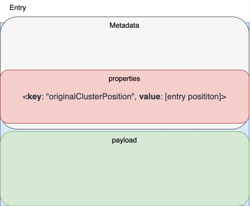 To solve this issue, we added the originalClusterPosition and the entry position to the message’s metadata when sending a message from the original cluster to the target cluster. originalClusterPosition is used to store the message ID in the original cluster. See Figure 9 for details.