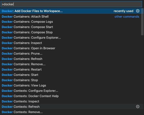 - Use the command palette to create a Dockerfile.