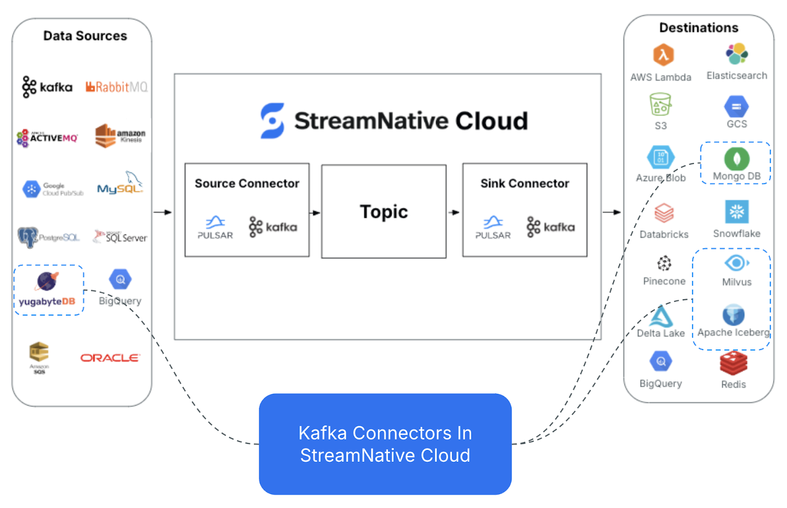 Fully Managed Connectors: These are connectors which are built and supported by StreamNative as fully managed connectors in StreamNative Cloud.