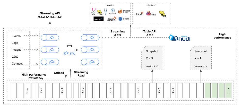 - Table/Batch API: Query the data that has been offloaded into your Lakehouse using external query engines such as Spark, Flink, and Trino, or managed cloud query engines like Snowflake, BigQuery, and Athena.