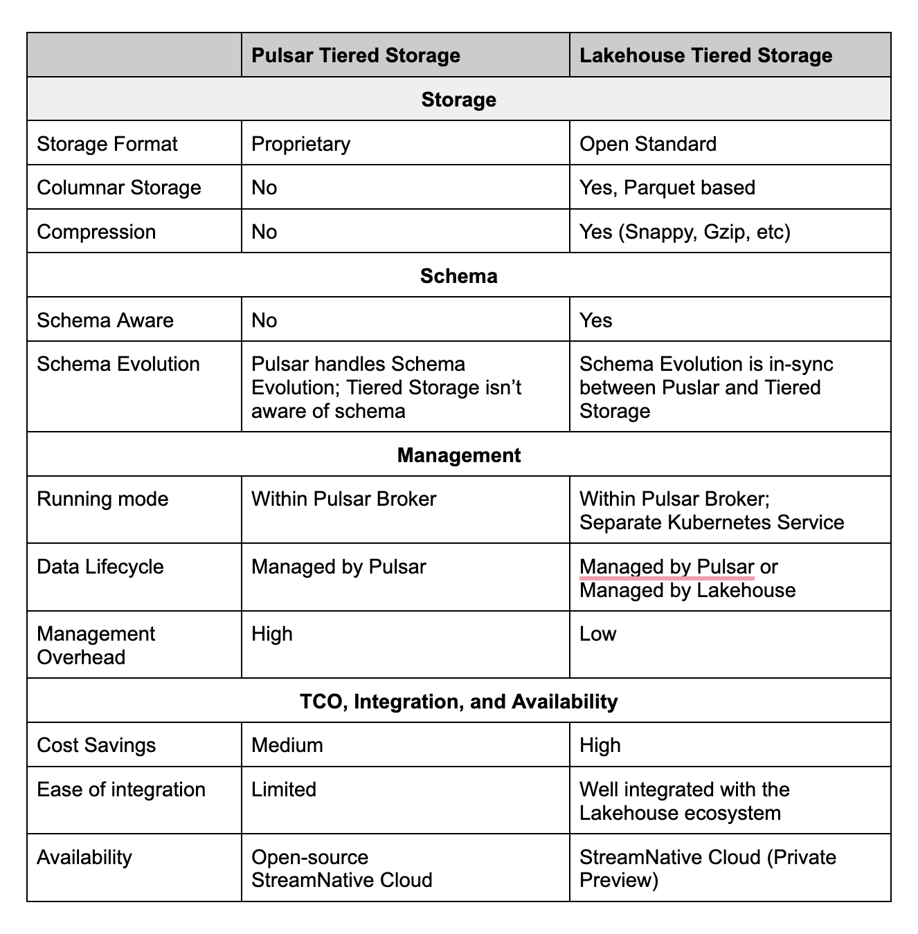 Pulsar Tiered Storage vs. Lakehouse Tiered Storage