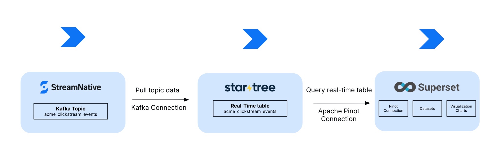 By combining StreamNative's real-time data streaming, StarTree's low-latency OLAP capabilities, and Superset's rich visualization layer, organizations can create dashboards for use cases such as real-time monitoring, anomaly detection, and business performance tracking without needing batch data pipelines.