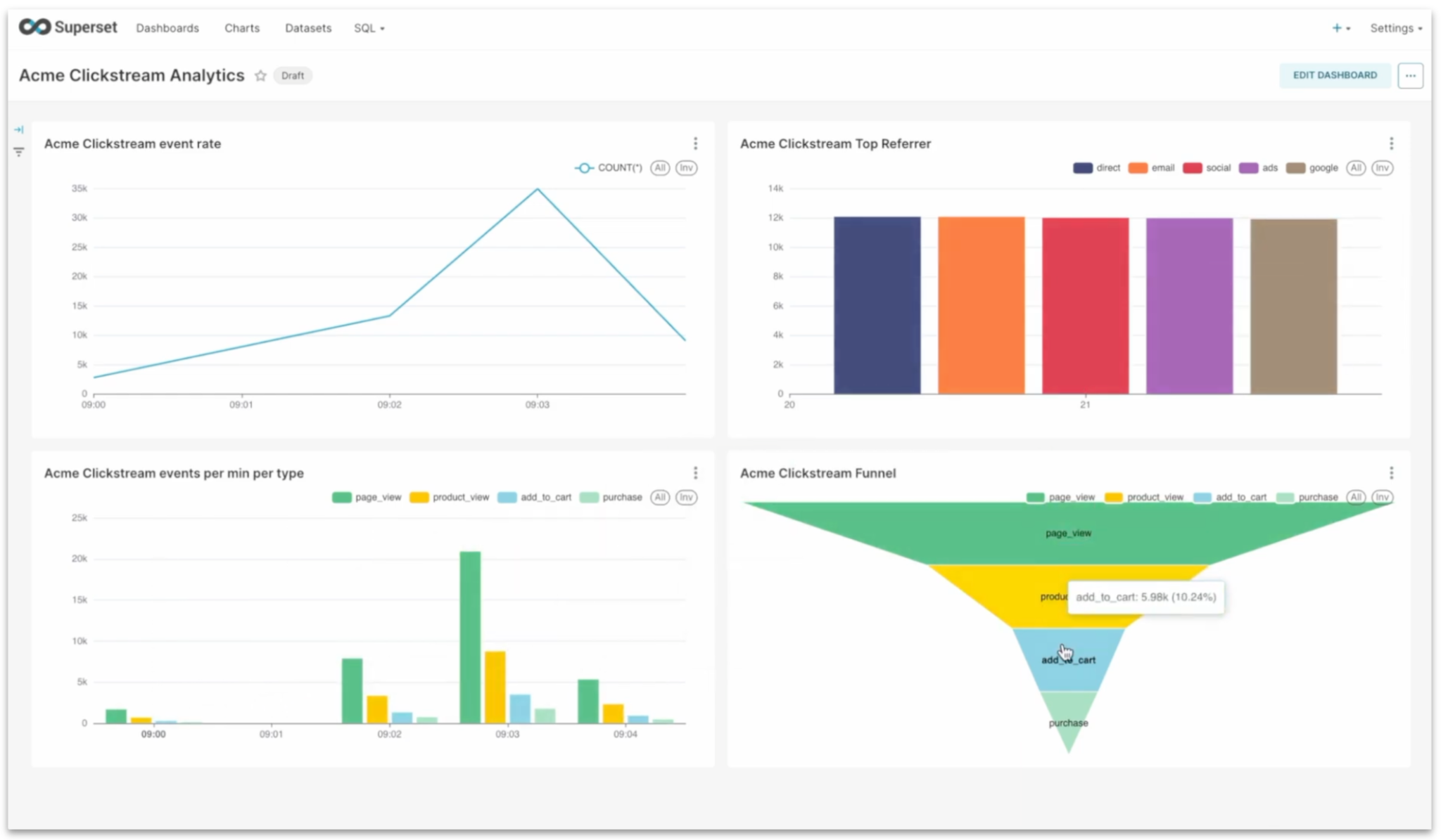 A live table in StarTree Cloud that continuously ingests data from a StreamNative Kafka topic enables real-time analytics by making fresh streaming data immediately queryable. This live table can be connected to Apache Superset as a datasource, allowing teams to build interactive dashboards that visualize up-to-the-second metrics, trends, and operational insights.