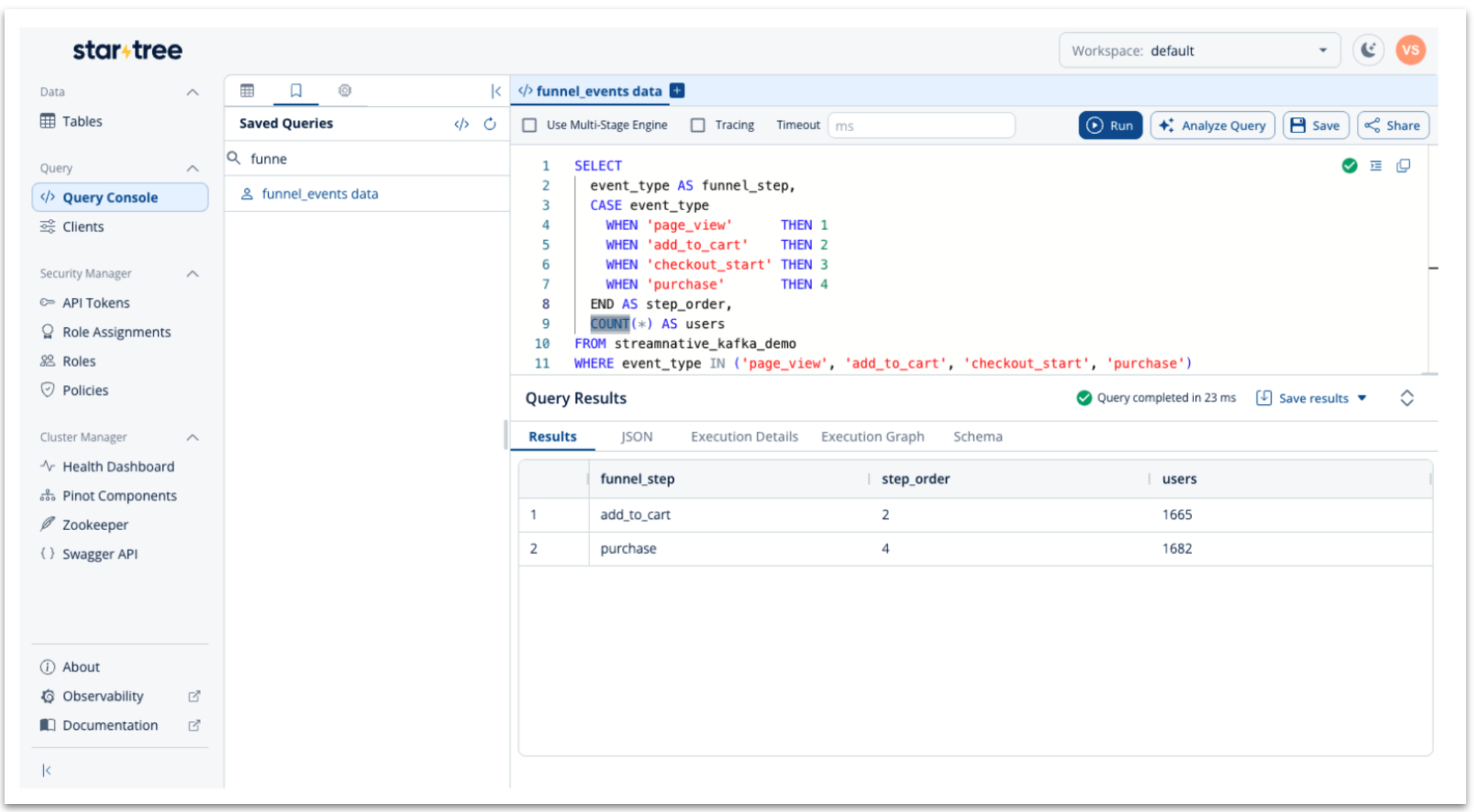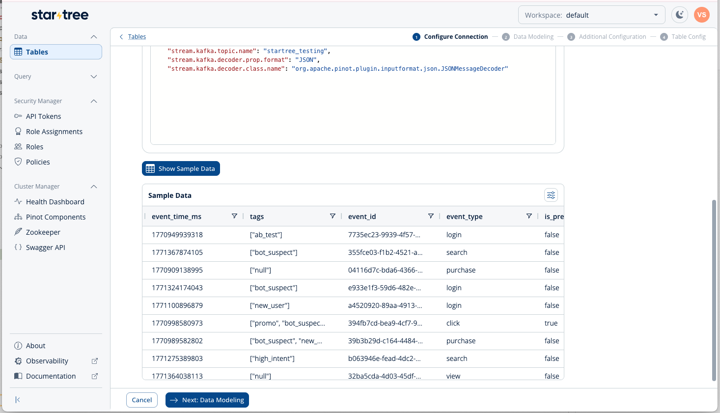 Once connected, StarTree enables customers to create live tables that continuously ingest and index streaming data from StreamNative Kafka topics.