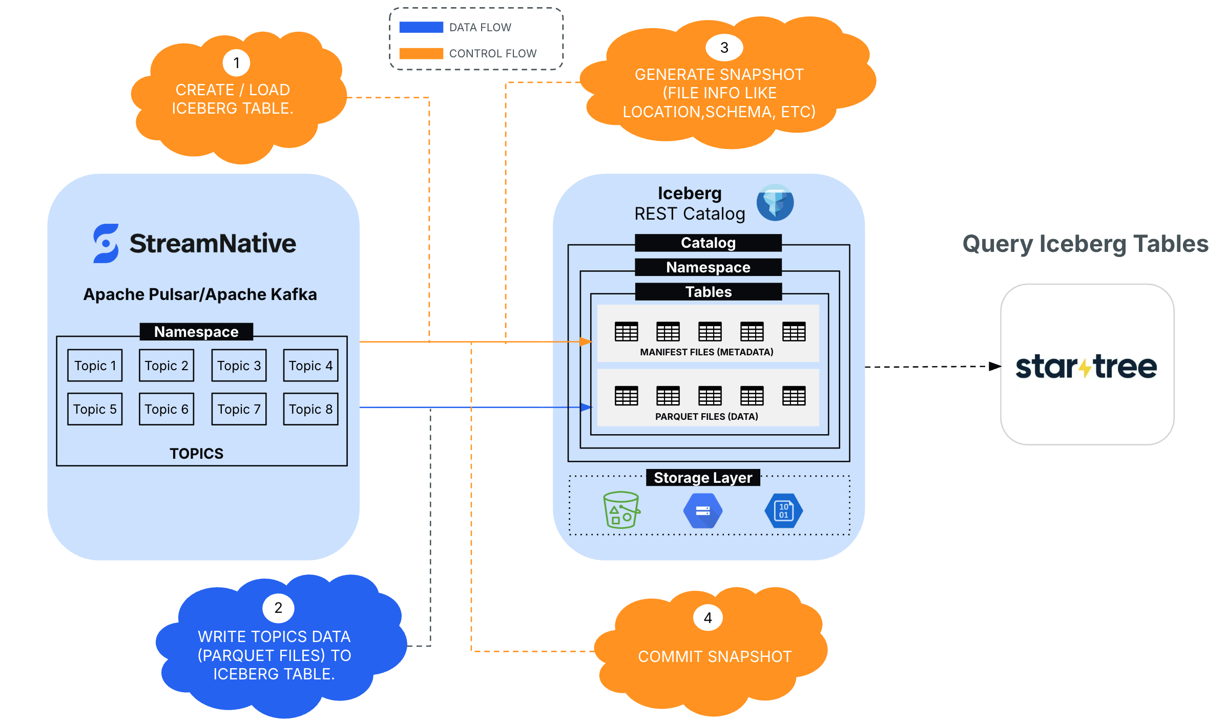 Beyond streaming ingestion, StreamNative can also sink data to open lakehouse formats such as Apache Iceberg -- enabling durable, cost-efficient storage for historical event data. StarTree natively supports querying this offline data through its External Table capability, allowing organizations to run high-concurrency, low-latency analytics across both streaming and historical datasets without duplicating data or building complex ingestion pipelines.