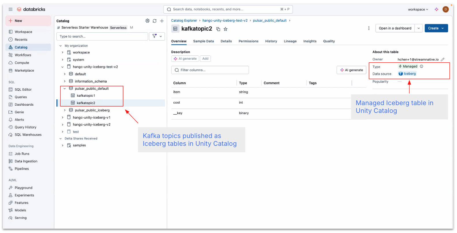 We’re excited to share that StreamNative is a launch partner for the Private Preview of Managed Apache Iceberg tables and the Iceberg REST Catalog in Databricks Unity Catalog!