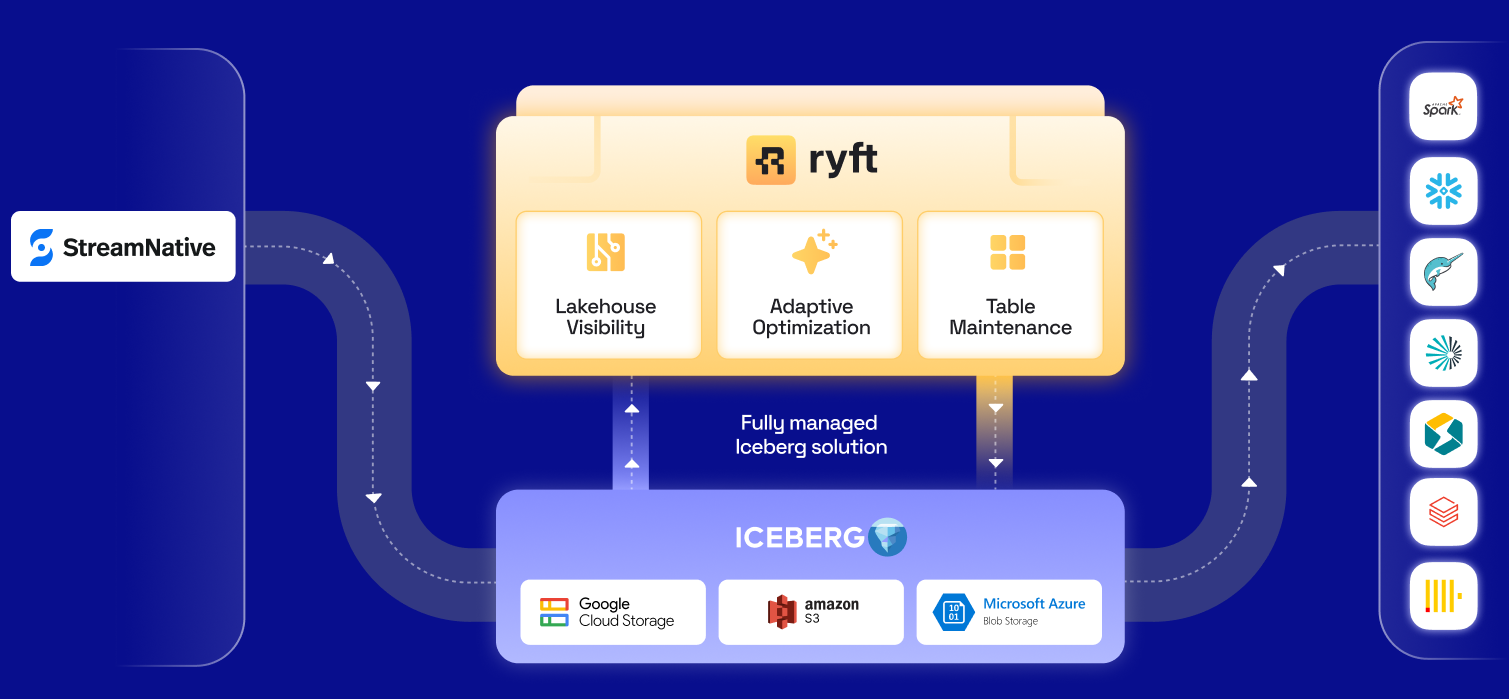 StreamNative and Ryft address this end-to-end: StreamNative ensures reliable, low-latency ingestion of streaming data into Apache Iceberg, while Ryft continuously manages those tables so they remain fast, cost-efficient, and compliant as they grow.