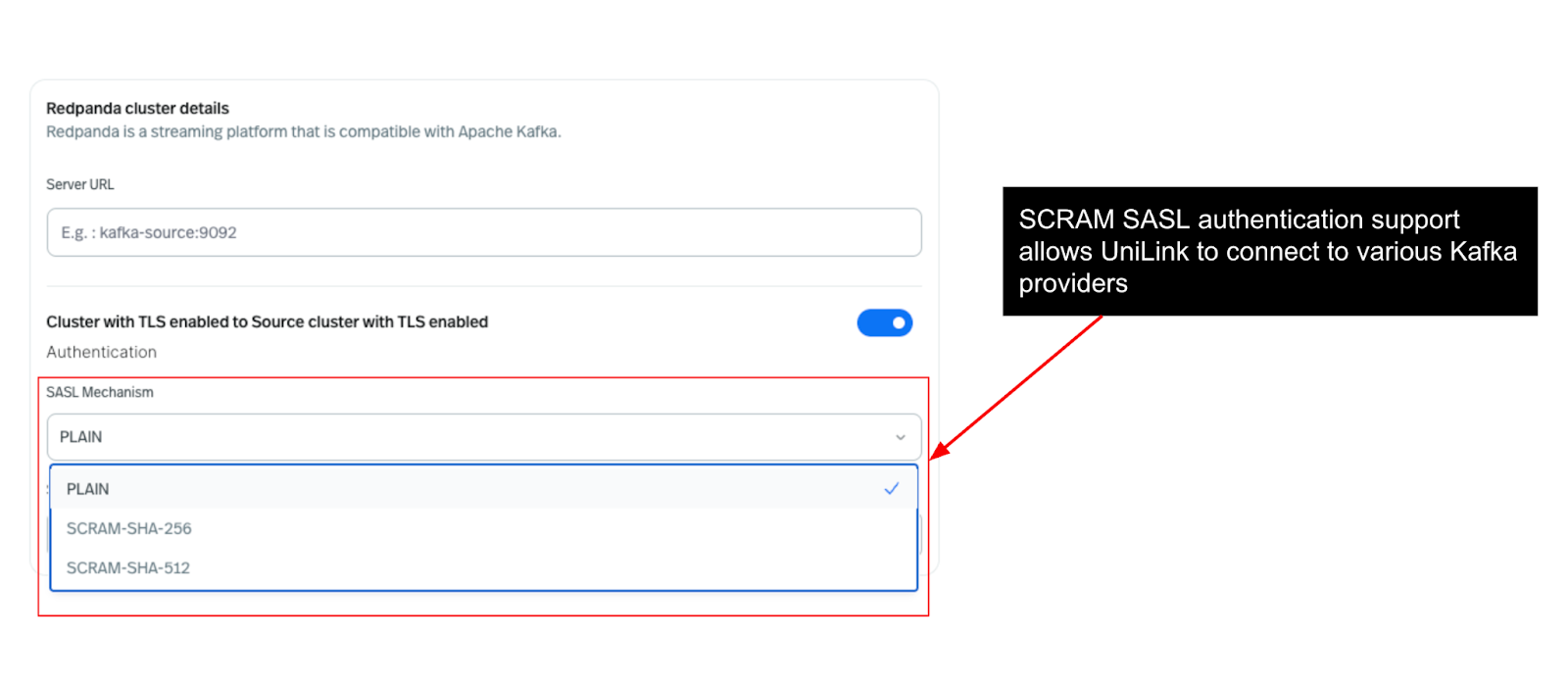 Universal Linking now supports a broader set of authentication mechanisms to connect to source Kafka clusters. Whether you're running on Redpanda, Amazon MSK, or another Kafka-compatible platform, you can now use various authentication methods — SCRAM-SHA, or TLS-based certs—to securely link your systems with ease.
