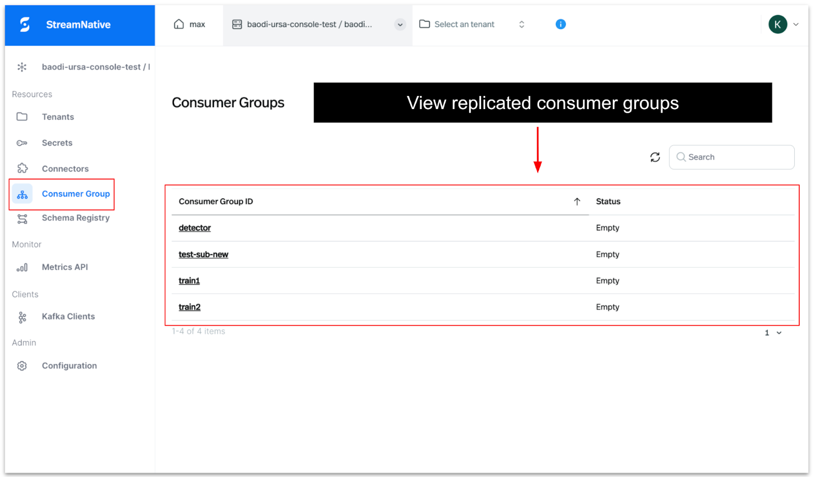 - Replicated Consumer Groups: Easily view all consumer groups that are part of the source Kafka cluster and track their metadata in real time.