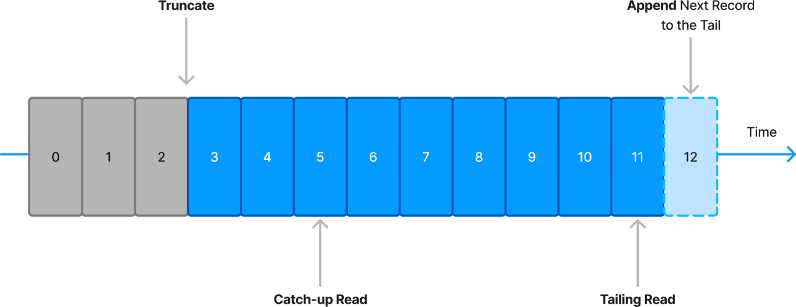 - Catch-up Read: The consumer starts reading from an older offset and processes the backlog of records to eventually catch up to the log’s tail.