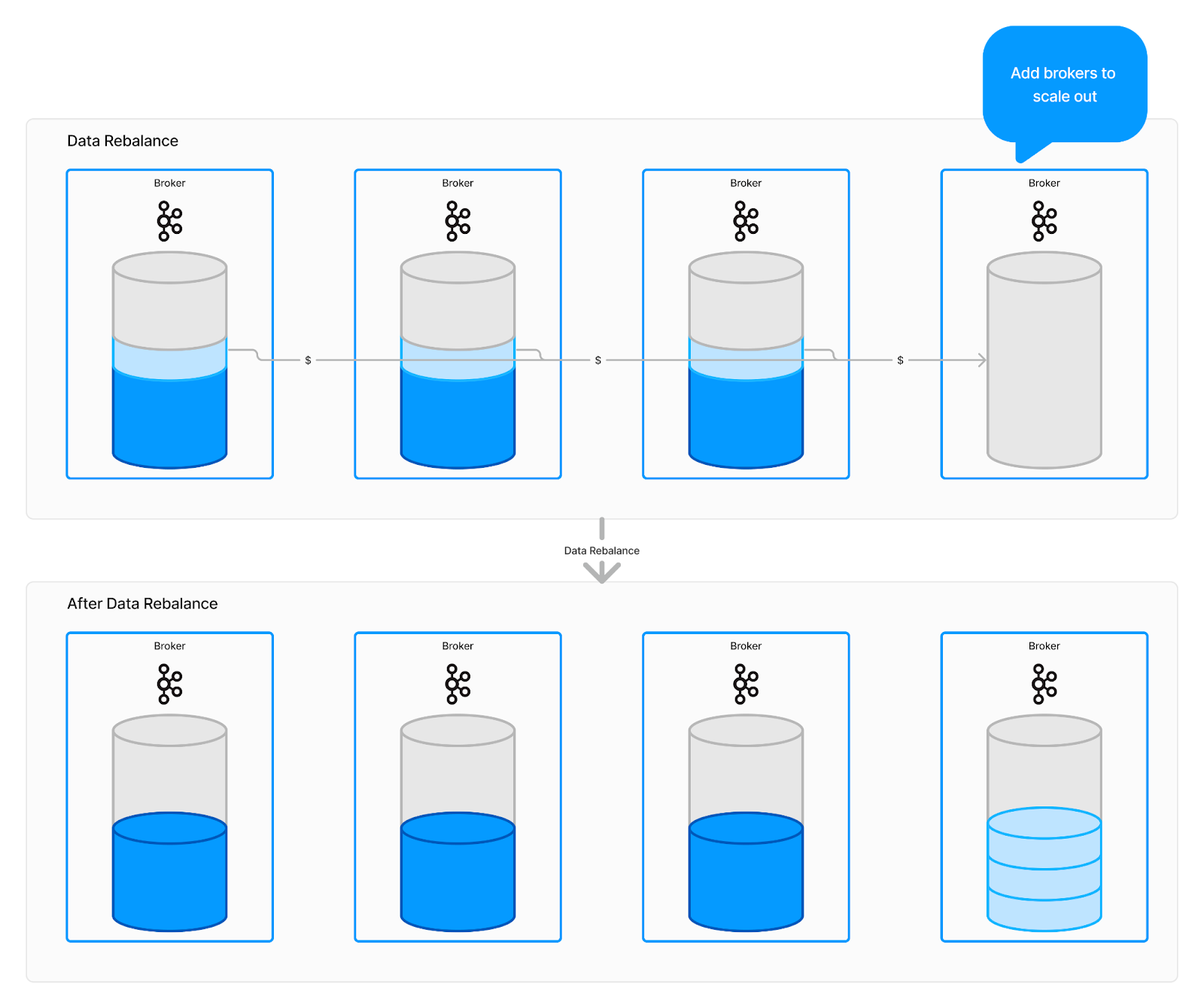 However, not all tiered storage implementations are created equal. Most Kafka-based tiered storage solutions focus on moving log segments to tiered storage while still maintaining local indexes within brokers for locating those segments. While this approach may reduce the impact of data rebalancing, it does not eliminate the need for it. During scaling operations, the system must move both the local indexes and any log segments that have not yet been offloaded to different brokers.