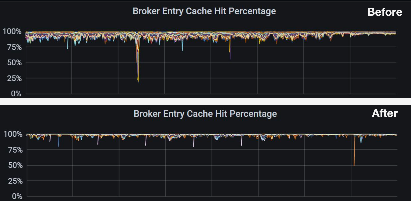Figure 8. Broker entry cache hit percentage before and after optimization